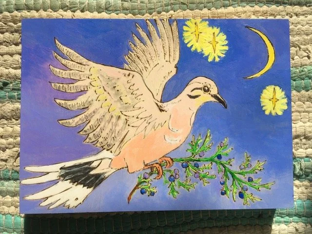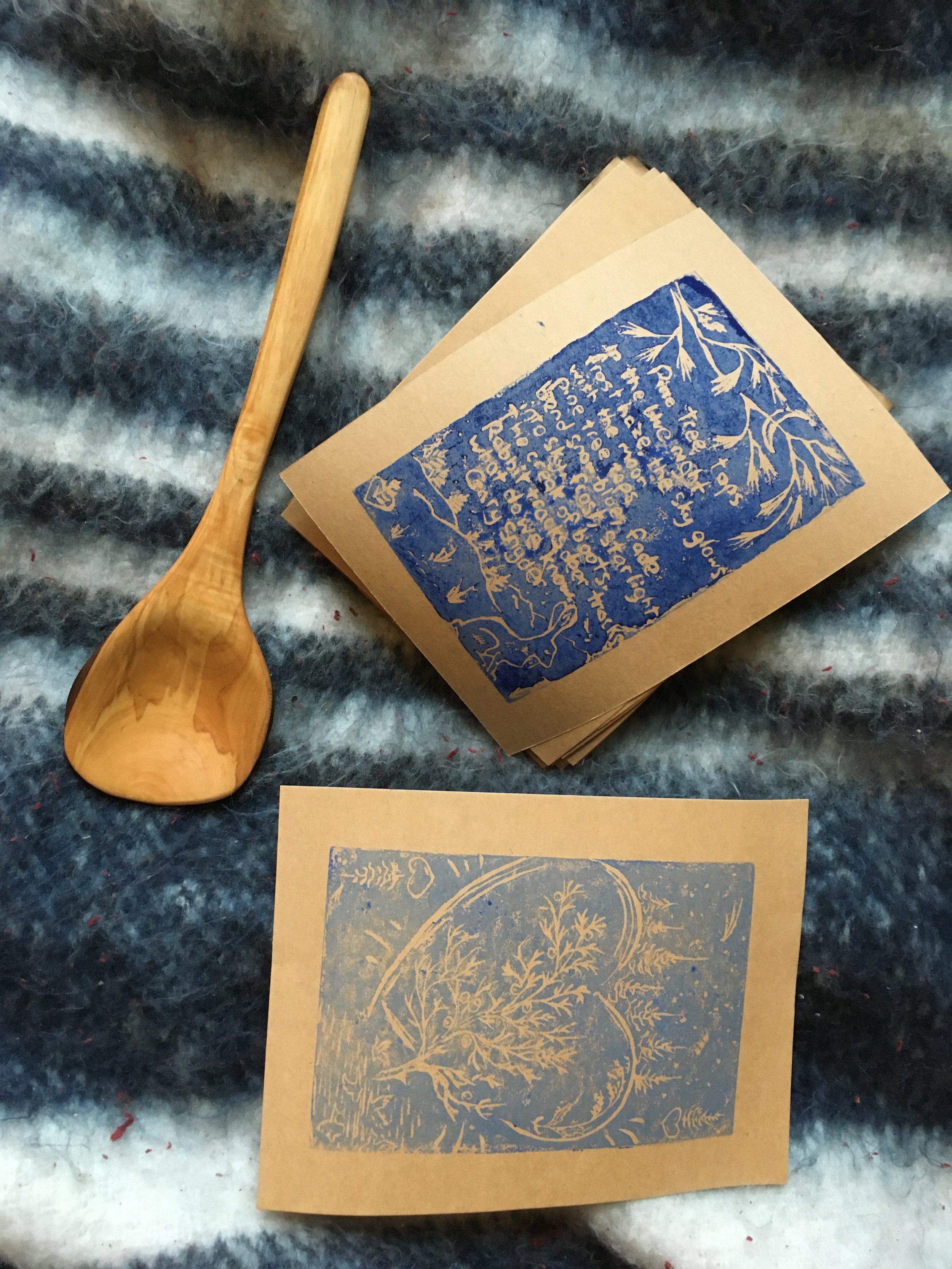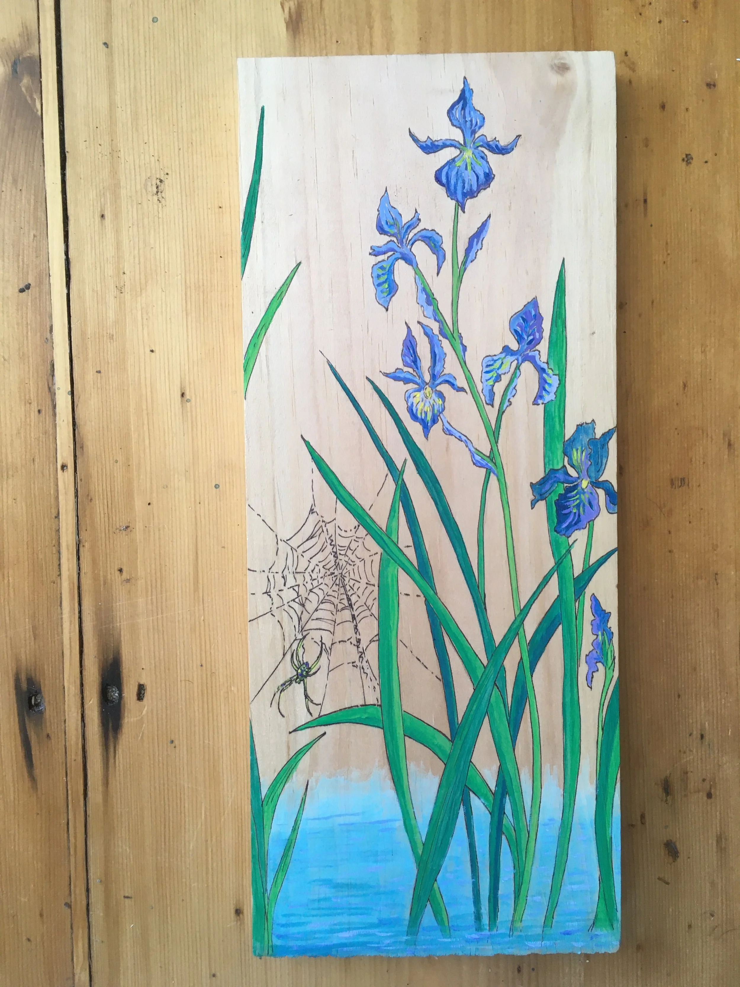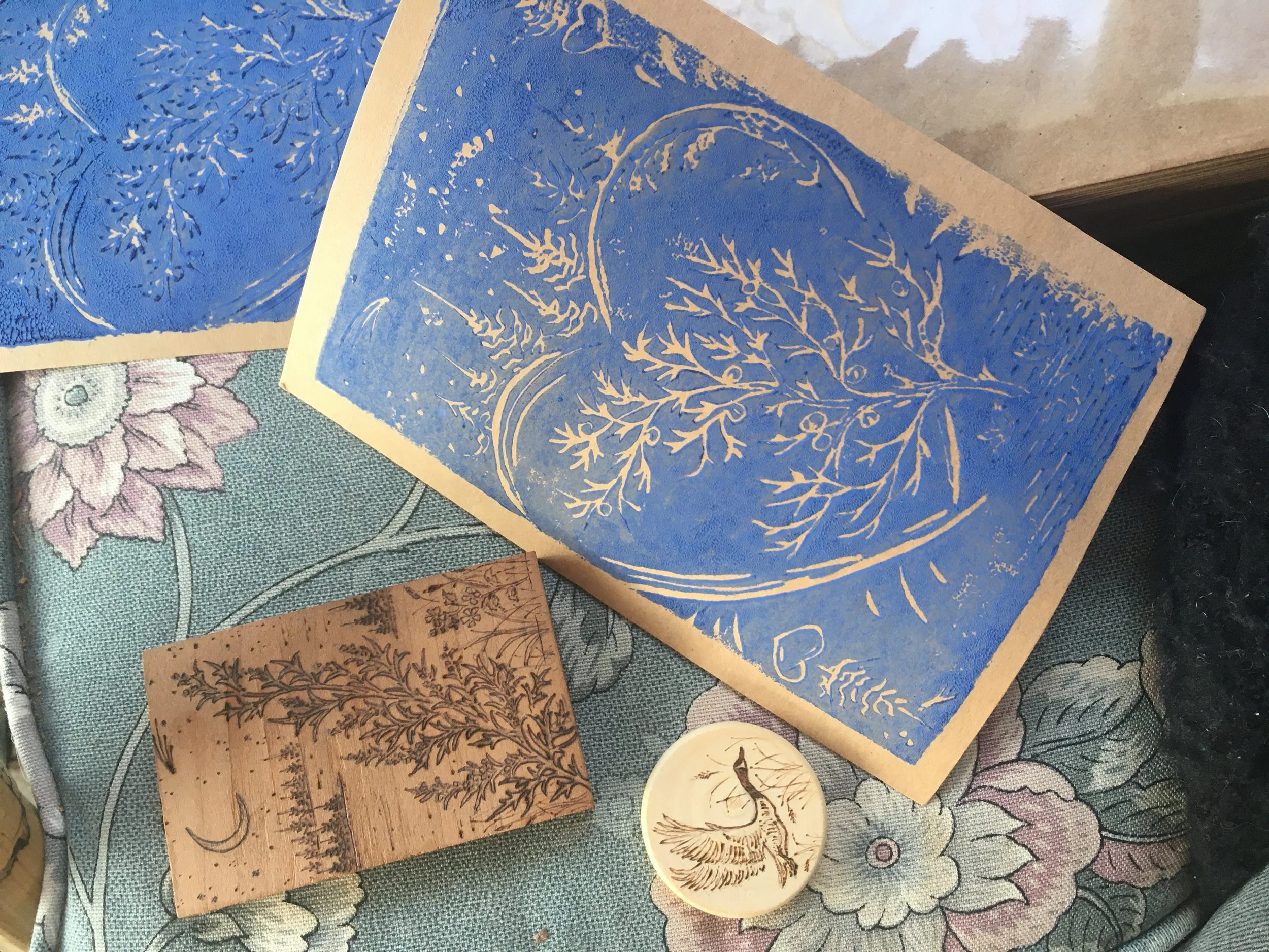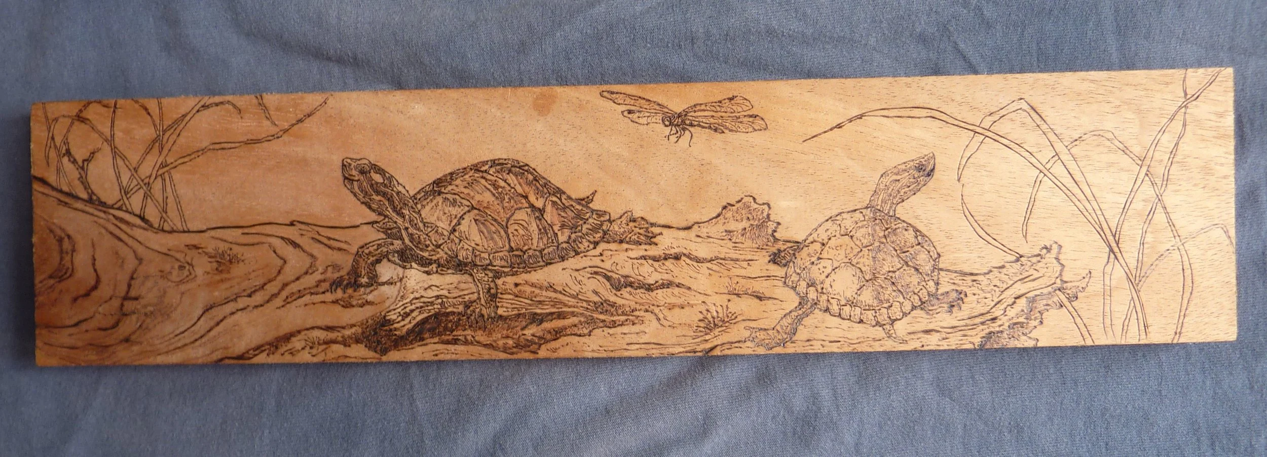 Art Offerings: Woodburnings of plants and animals, including pet portraits and memorials; wooden spoons; candles; copper, shell and stone jewelry; murals; and printmaking